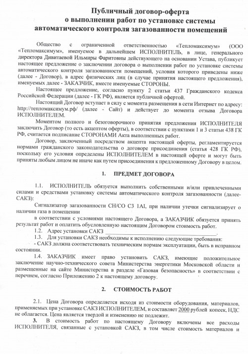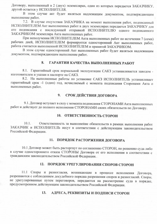 Договор-оферта по установке САКЗ